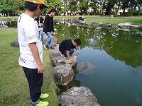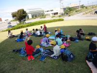 雨で一日延期になりましたが、秋晴れの中、金沢市の北部公園に行きました。約7kmの道のりを1時間半ほど歩きました。公園はとても広く、遊具や池もありました。ボールや縄跳びをして遊んだり生き物を探したりして自由時間を過ごしていました。お弁当を食べた後、各クラスで考えてきた遊びを、5年生と6年生全員で楽しみました。