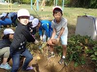 1年生が、育ててきたさつまいもを掘りました。