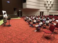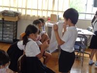 今日は、多目的室で、講師を招いて鍵盤ハーモニカ講習会がありました。1年生は、先生のお話をしっかり聞いて、正しい扱い方、正しい吹き方を学んでいました。