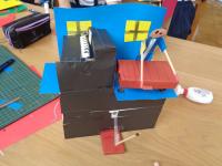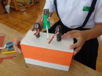 6年生の図工ではクランクの仕組みを生かした作品作りをしていました。クランクとは、軸の動きによって、軸にくっつけた作品が一定の動きを繰り返すつくりのことです。