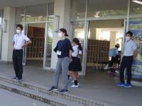 本日も朝から暑い一日となりました。子どもたちはどんな表情で学校に来ているのかなと玄関に立ってみました。校門方向から、一人一人が適度に距離を保ちながら歩いてくる姿が目に入りました。保護者の方が、ご家庭でも感染症予防のために日々声かけをしてくださっているのが、お子さんの姿から伝わりました。いつも本当にありがとうございます。