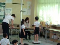 お話を聞いた後、身長と体重を測定し、自分たちの伸びを実感していました。