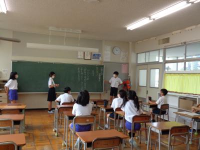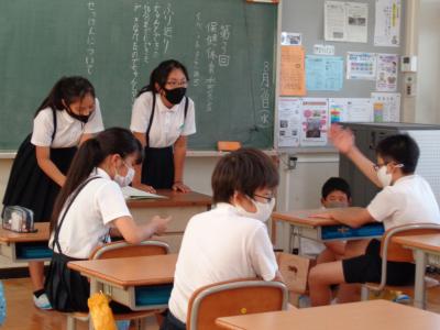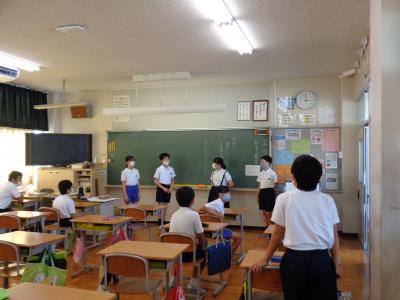 校内では、検温チェックコーナーを通って教室に入った後、高学年は朝の委員会活動をしていました。