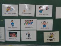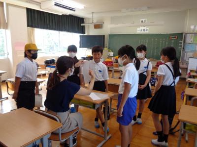 教科書の絵カードもヒントになっているので、教科書を片手に一生懸命質問している子もいました。5年生で、これだけの英単語を知っていることに驚きます。それと同時に、子どもたちのたくましさも感じることができました。