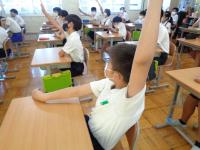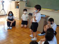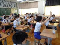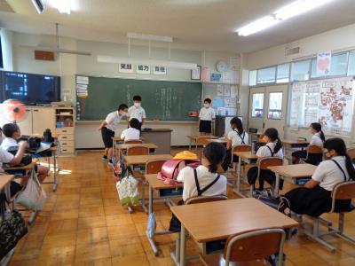 今日、明日と5時間授業で下校します。少しずつ、学校の生活リズムに子どもたちが慣れていってほしいものです。また、暑い夜が続くため就寝中に熱中症にかかることもあるようです。子どもたちが元気に学校で過すごせるよう、明日からも、毎朝の健康観察や検温へのご協力をお願いいたします。その際、お子さんに風邪等の症状や発熱、熱中症の予兆等が見られましたら登校せず、ご家庭で静養をなさってください。