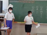 今日は1組がまとめたことを2年生に発表しました。