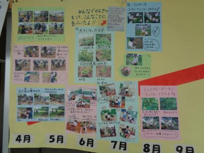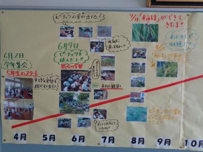 学習活動が月ごとに掲示してあり、写真を見ていると、さまざまな活動を通して子どもたちが成長していることが伝わってきます。