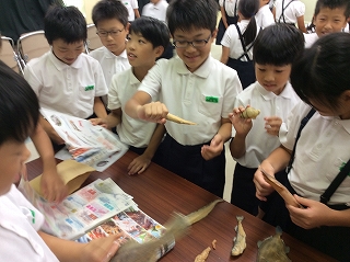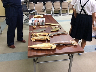魚の干物の実物や、魚網などを実際に見せながら分かりやすく説明していただきました。