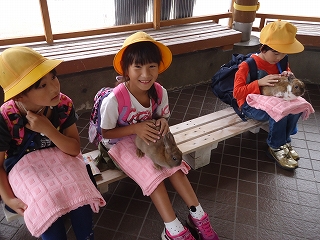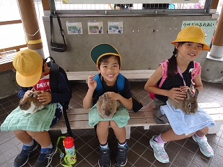かわいい動物とかわいい子どもたち。はまなすグループのみんなとなかよく歩いたり、お弁当を食べたり。