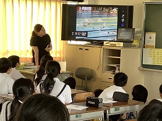 今日は、ロンドンオリンピックにも出場経験のある水泳選手の加藤和さんをお招きして、夢の教室が開かれました!!