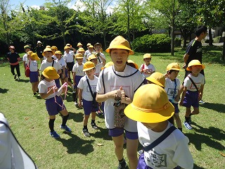 「みんなあつまってー。」「トイレ大丈夫?」などと、子どもたち同士で声をかけながら行動する姿がたくさん見られました。またひとまわり成長した子どもたちをいっぱい褒めてあげたいです。