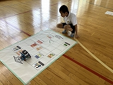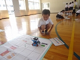 「前へ」、「右へ」、「左へ」、「後ろへ」、「止まれ」の5つの命令を組み合わせ、順に並べていきます。