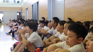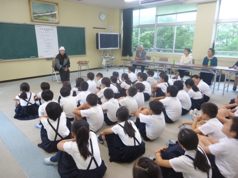 3年生は、白山市、金沢市、羽咋市から語り部さん3名をお迎えして、それぞれの地域に昔から伝わるお話を聞きました。普段は、テレビなどの映像や絵本などの絵でお話を楽しむことが多いですが、今日は語り部さんが語る声だけでお話を楽しみました。少し難しいお話もありましたが、みんな真剣な表情で、想像を膨らませてお話を聞くことができました。