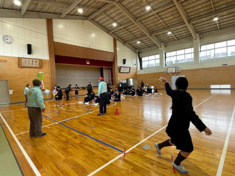出来上がった凧は、体育館で試しあげを行いました!