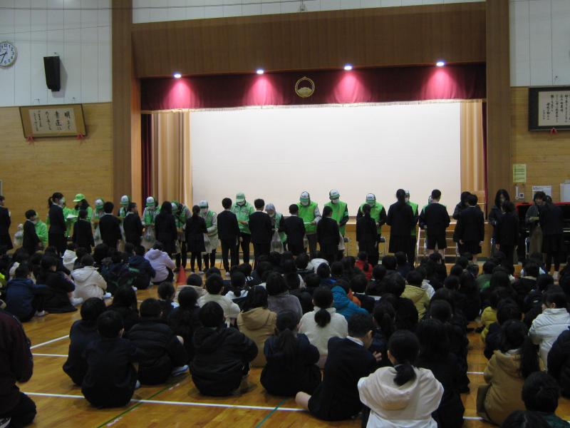 普段お世話になっている防犯ボランティアさん、読み聞かせボランティアの「がらがらどん」の皆さんに感謝の気持ちを伝える「感謝の会」が行われました。