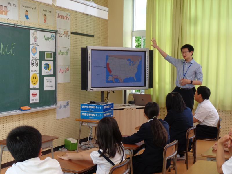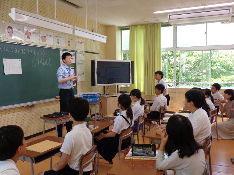 5年生と6年生はそれぞれの外国語の授業で、内灘町の国際交流員のチャンスさんに来ていただいて自己紹介をしました。
