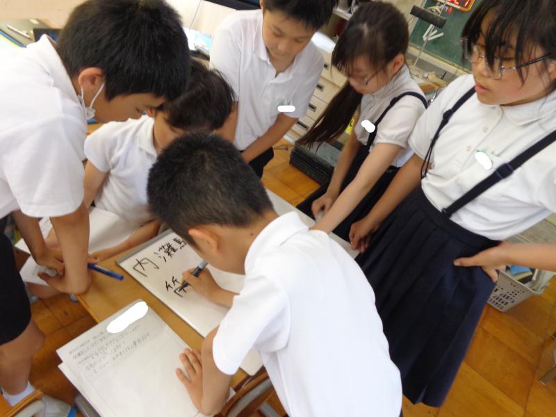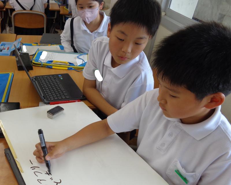 4年生は、総合「だれもが住みよい町」の学習で、施設見学に行き、バリアフリーなど施設の工夫について学んできます。今日はその施設見学に向けて、同じ施設に行く仲間たちと話し合いながら、施設の方に聞きたいことをまとめていました。また、自分たちで施設までの行き方や必要な物についても考えていました。