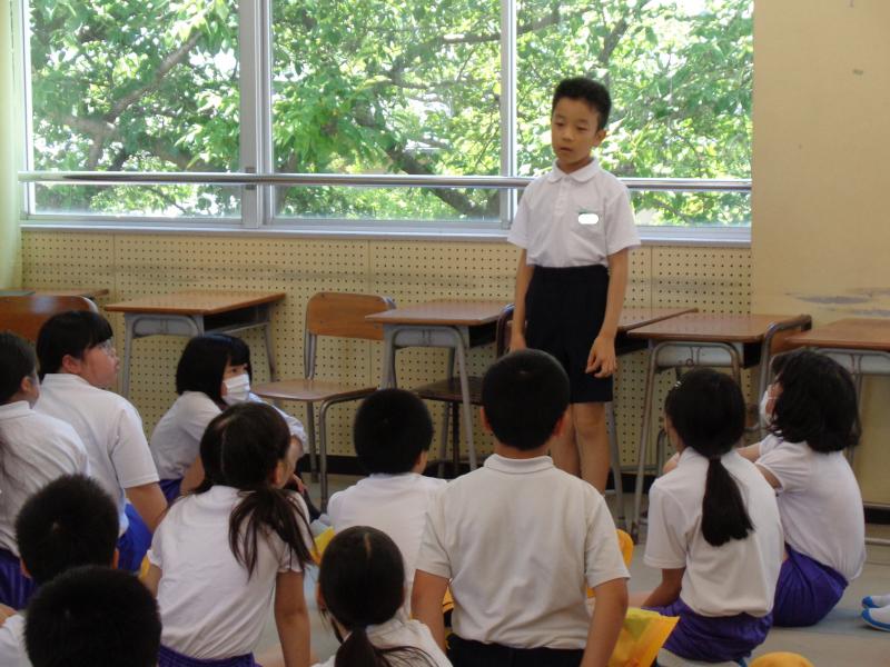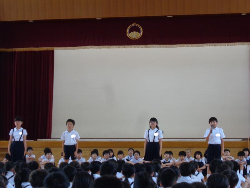 学校長からは、7月7日の七夕についてのお話と、生徒指導担当からは、7月の生活目標のお話がありました。