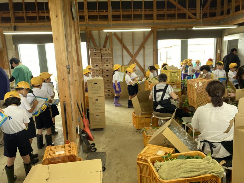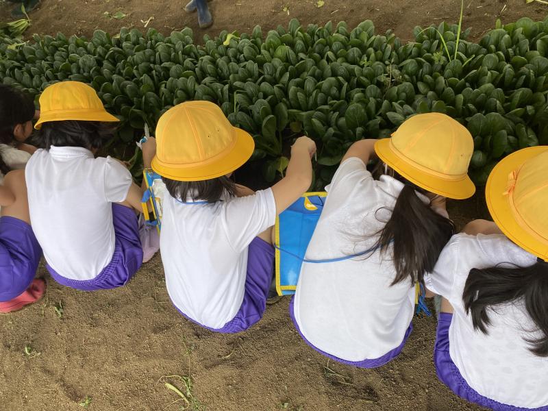 最後には、ビニールハウスの見学と小松菜の収穫体験をさせていただきました。収穫から袋詰めまで、貴重な経験をすることができ、嬉しそうな様子の子ども達でした。
