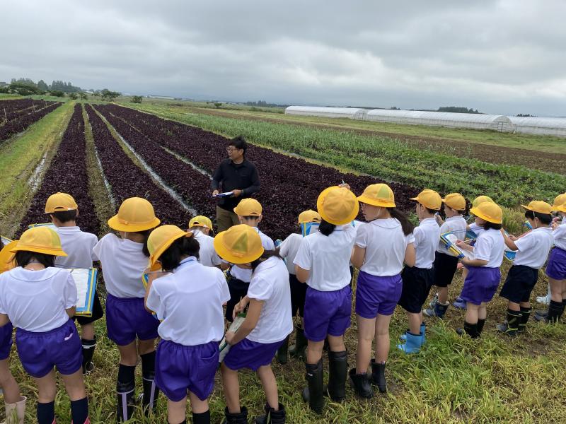 社会科「農家の仕事」の勉強で、河北潟干拓地にある笠間農園さんに見学に行ってきました。