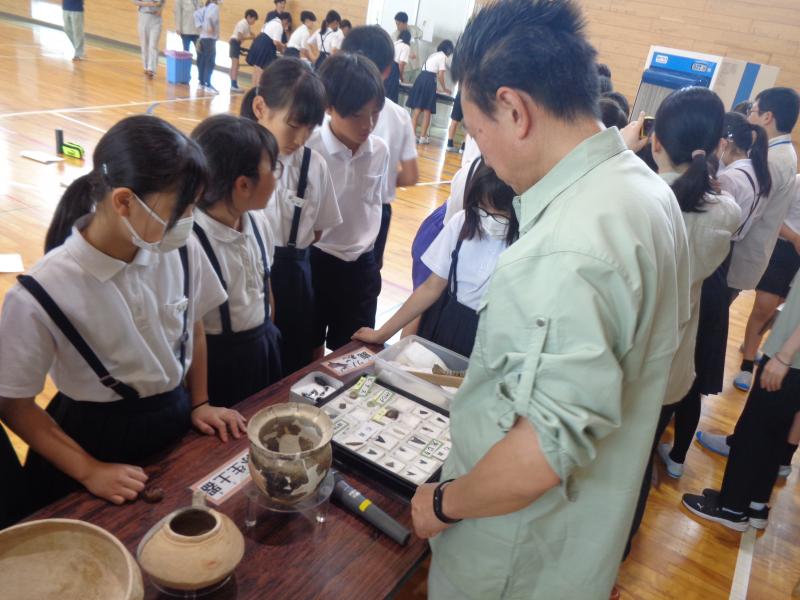 6月26日(水)に、出前考古学教室がありました。石川県埋蔵文化財センターの方々に来ていただき、縄文時代の人々のくらしについてのお話を聞きました。また、土器や弓矢、当時のアクセサリーなどを見て学ぶこともできました。火起こし体験も行いました。なかなか火が付かず、とても苦労する6年生。昔の人々が大変な思いをして火を起こしていたことを実感することができ、充実した時間となりました。