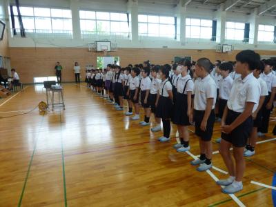 1時間目は、体育館で始業式を行われ、学校長・学習部・生徒指導部からそれぞれに2学期の初めにあたっての心がまえやめあてのお話を聞き、2学期の学校生活がスタートしました。