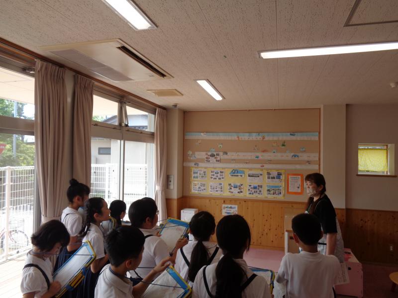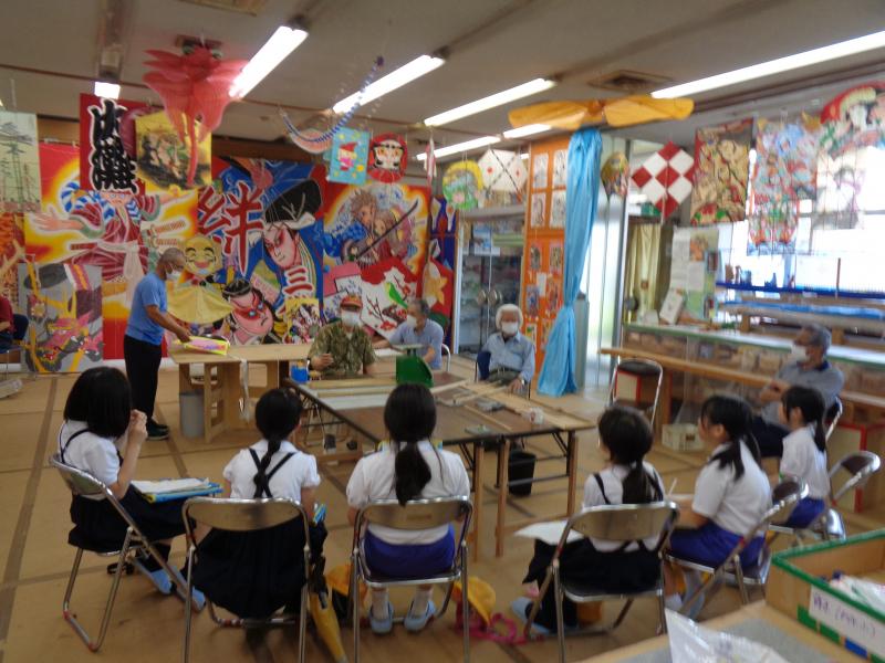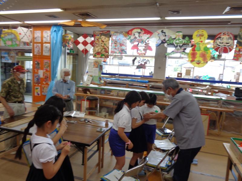 内灘町凧会館では、凧作り30年以上のベテランの方たちが出迎えてくださり、凧を通して、老若男女の町民たちと交流してこられたお話を聞かせていただきました。児童たちは、「こんなすごい凧を見られて嬉しい。」「自分たちも作ってみたい。」と話し、5年生「連凧作り」での再会を約束して、会館を後にしました。