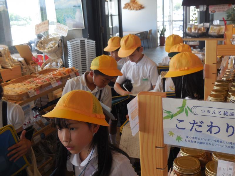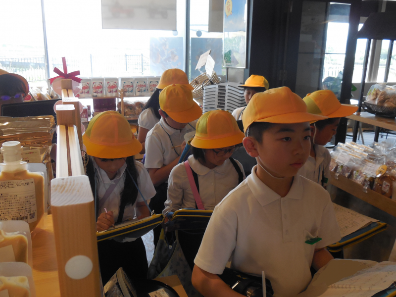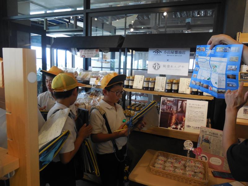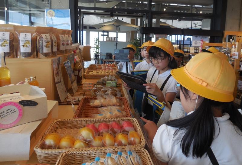 内灘サンセットパークでは、外国の方や小さい子ども、高齢者など、たくさんの方がお店を利用する中で、お店の方はどのような対応をしているのか、どんな工夫をしているのかについて取材しました。お宝マーケットでは、3年生の時お世話になった笠間農園の野菜など「地域のお宝」がたくさんあふれていました。