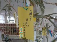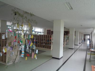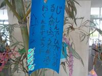 先週、児童玄関に大きな笹が3本立てかけられました。