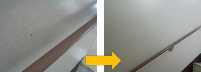 【手あかで汚れていた階段の壁(ビフォーアフター)】