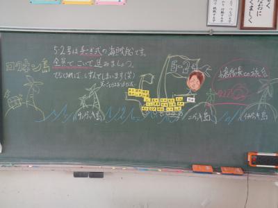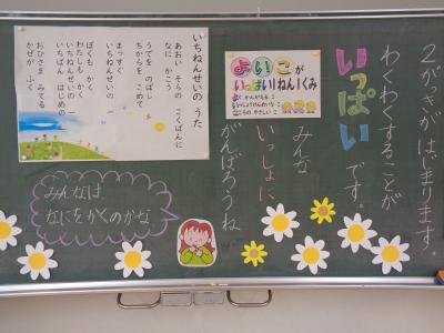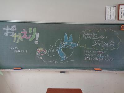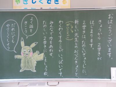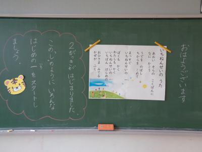 各教室には、黒板に書かれた先生方からのメッセージが子どもたちを待ち受けていました。