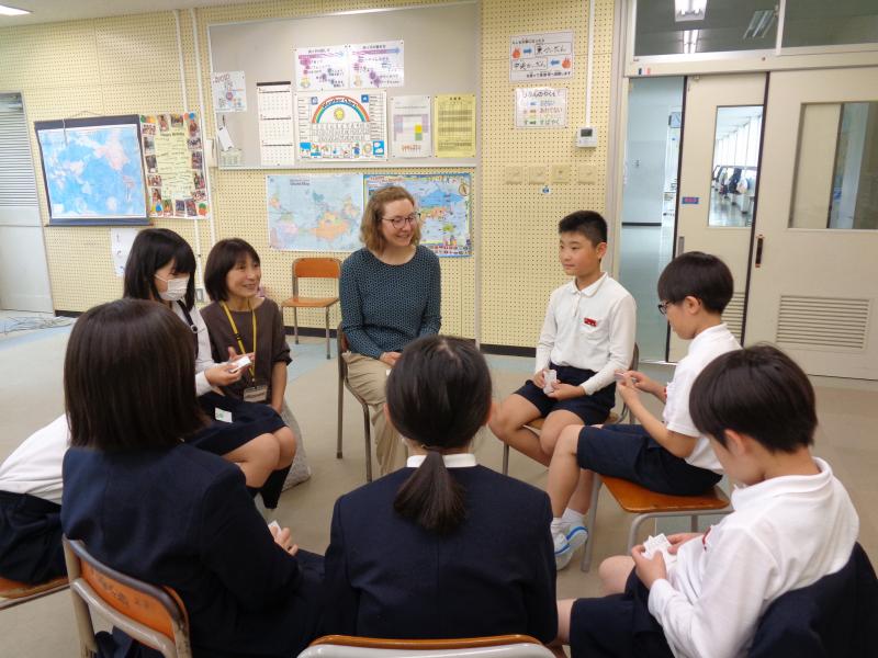 名前のスペルや好きなものなどを伝えることができました。その後のフリートークでは、好きな食べ物やスポーツ、動物などについて楽しく伝え合うことができました。