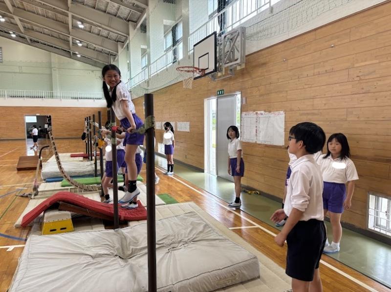 また、他の小学校の4年生の演技を見て、よい刺激をもらい、新しい技に挑戦したいという声も多く聞かれました。次は、授業参観の発表に向けて、さらにレベルアップできるように頑張りましょう!