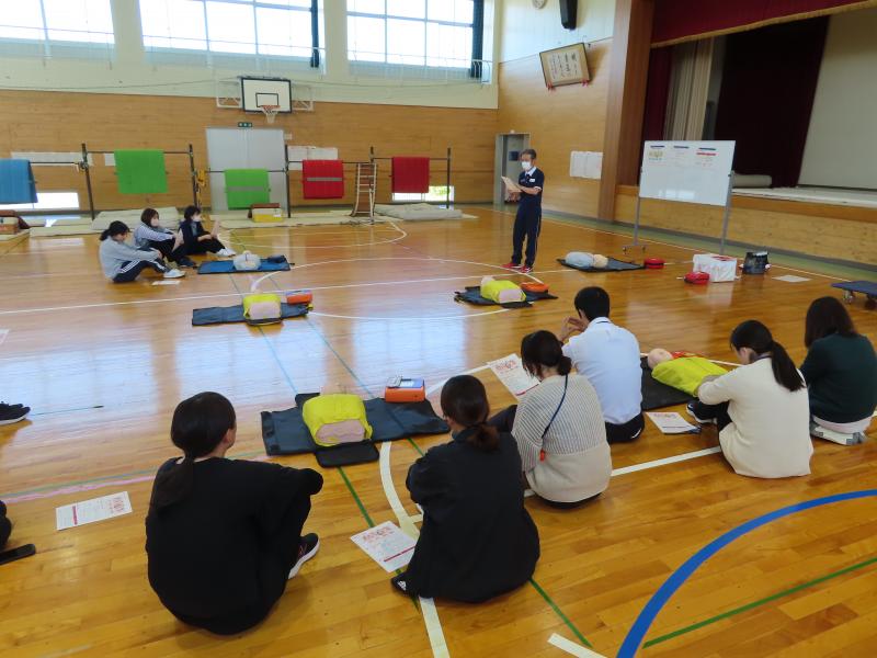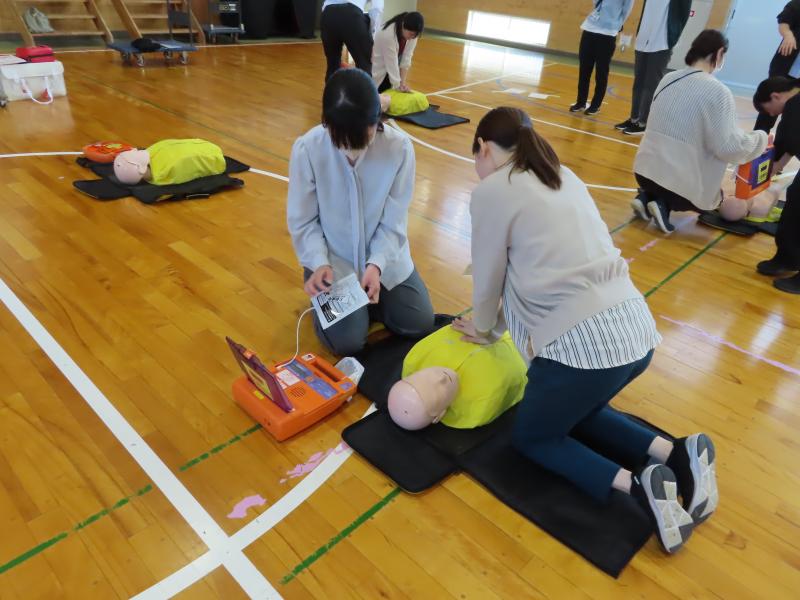 6月から始まる水泳の指導に備えて、職員の救急法講習会を行いました。あってはならない水の事故ですが、万が一起こってしまったら、少しでも早く命を救う行動をしなければなりません。もしもの時にあわてずに行動するには、訓練は絶対に必要です。