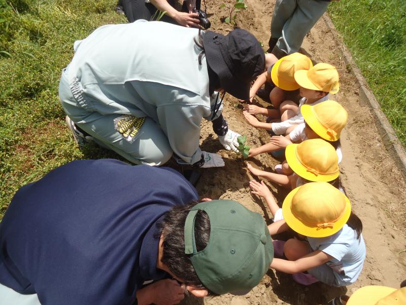 JA石川かほく農業協同組合の方に来ていただいて、苗の植え方と夏野菜の育て方を教えていただきました。子どもたちは「はやく大きくなってほしい」「たくさんできるといいな」と言っていました。収穫を楽しみにお世話をしていきます。