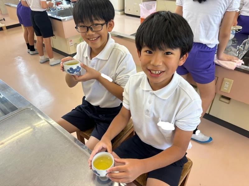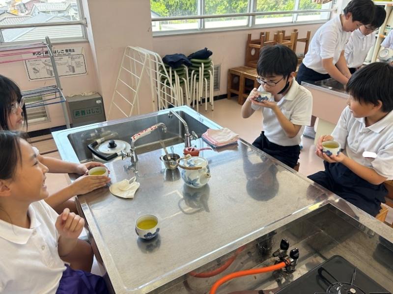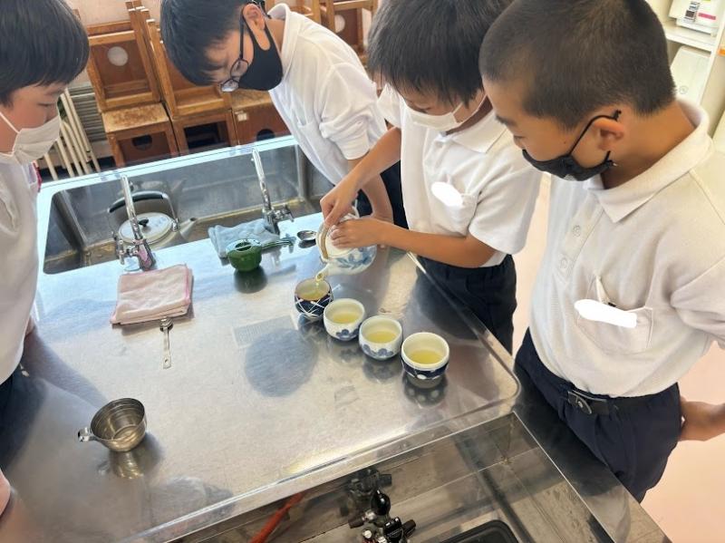 今回は家庭室でお茶を入れる学習をしました。