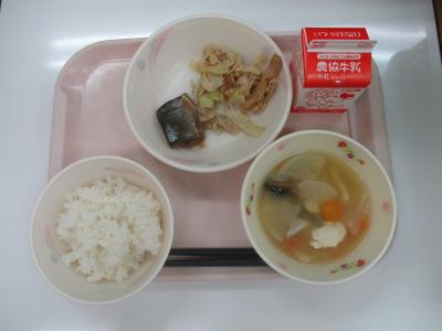 ~ごはん、さばみそ煮、ごま和え、けんちん汁、牛乳~