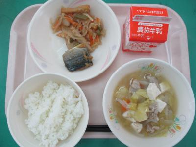 ~ごはん、さばみそ煮、切り干し大根のうま煮、豚汁、牛乳~