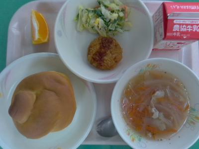 ~キャロットパン、トンカツ、コールスローサラダ、春雨のスープ、牛乳、デコポン~