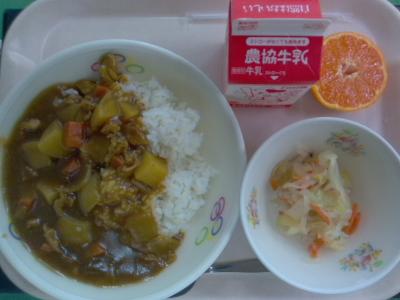 ~(麦飯)、カレーライス、即席漬け、みかん、牛乳~