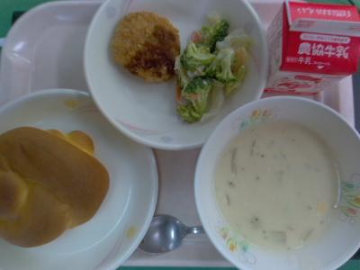 ~キャロットパン、チキンカツ、ブロッコリーサラダ、コーンポタージュ、牛乳~