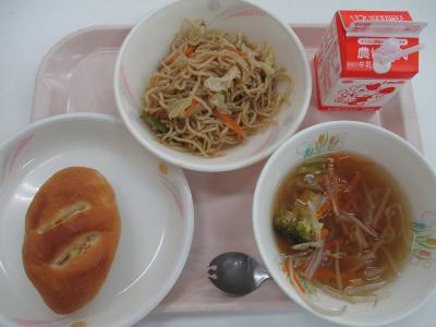 ~チーズクッペ、焼きそば、野菜スープ、牛乳~
