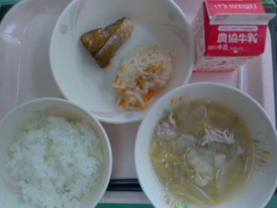 ~ごはん、ぶりのみりん焼き、だいこんなます、具だくさん汁、牛乳~