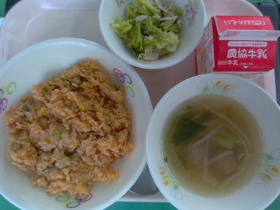 ~チキンライス、ブロッコリーのごまサラダ、肉団子スープ、牛乳~