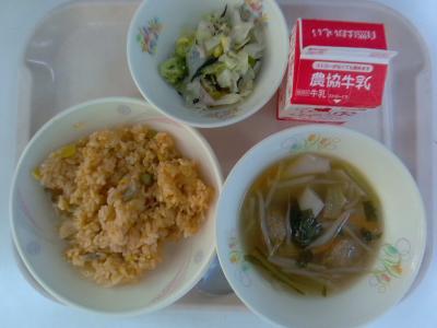 ~チキンライス、ひじきのサラダ、ワンタンスープ、牛乳~