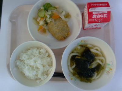 ~ごはん、コロッケ、即席漬け、わかめうどん汁、牛乳~