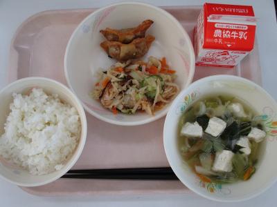 ~ごはん、揚げギョウザ、切干大根の中華サラダ、春雨スープ、牛乳~