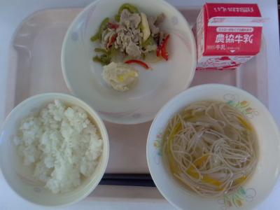~ごはん、コーンシュウマイ、ピーマンの炒め物、にゅうめん、牛乳~