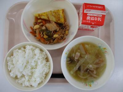 ~ごはん、スペイン風オムレツ、ポークケチャップ、オニオンスープ、牛乳~