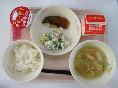 ~ごはん、さばのねぎみそ焼き、れんこんサラダ、大根のみそ汁、牛乳、ヨーグルト~